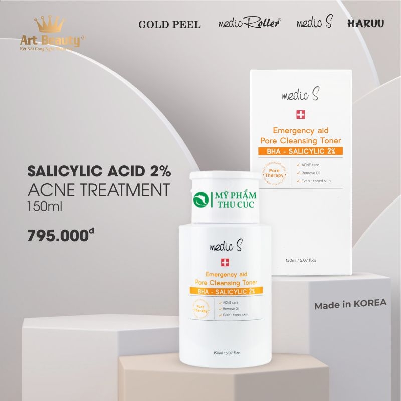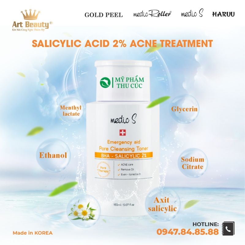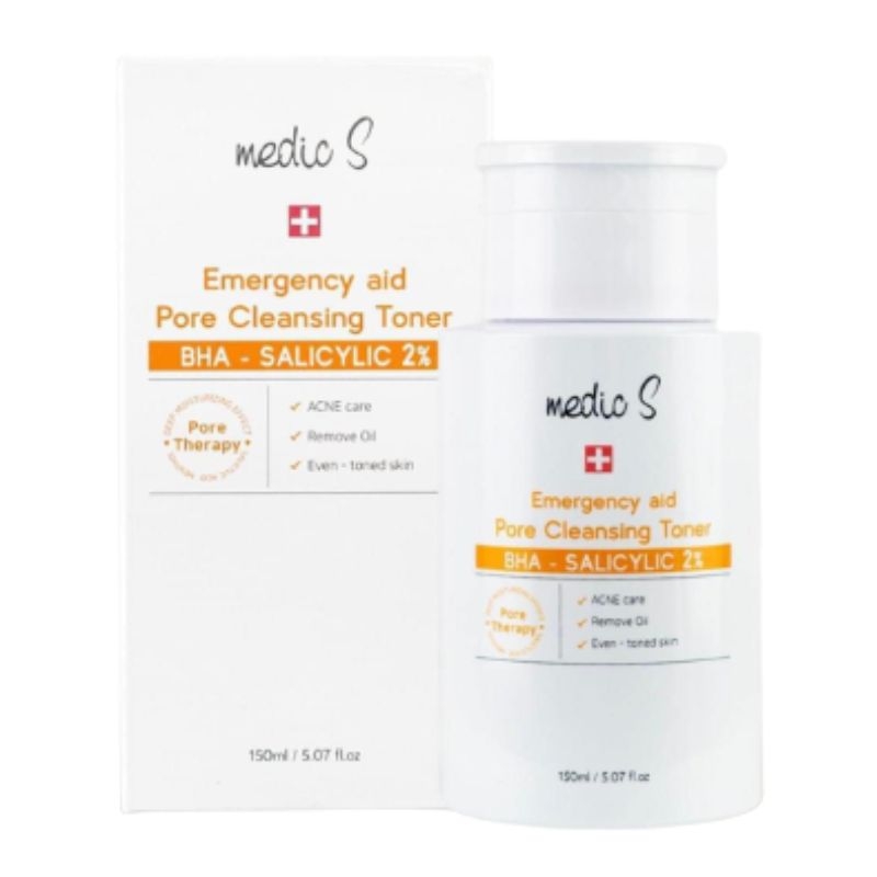 BHA Salicylic 2% Medic S - BHA Salicylic 2% Medic S Emergency aid Pore Cleansing Toner 150ml một sản phẩm làm sạch sâu lỗ chân lông trên bề mặt da, giúp loại bỏ dầu cho da,cho làn da da mịn màng đều màu da, hỗ trợ quá trình giảm mụn an toàn .