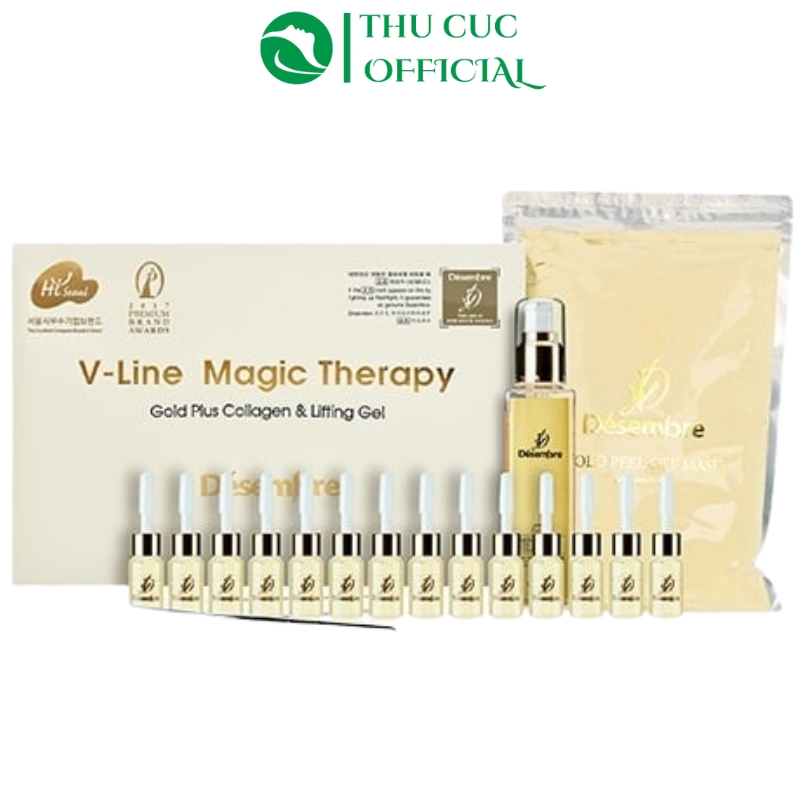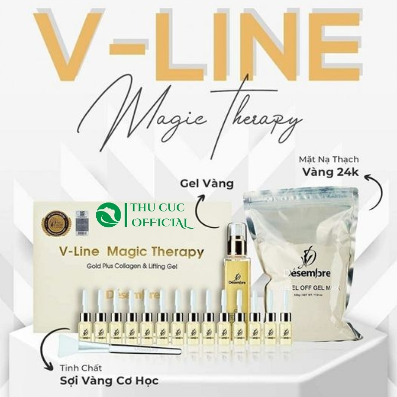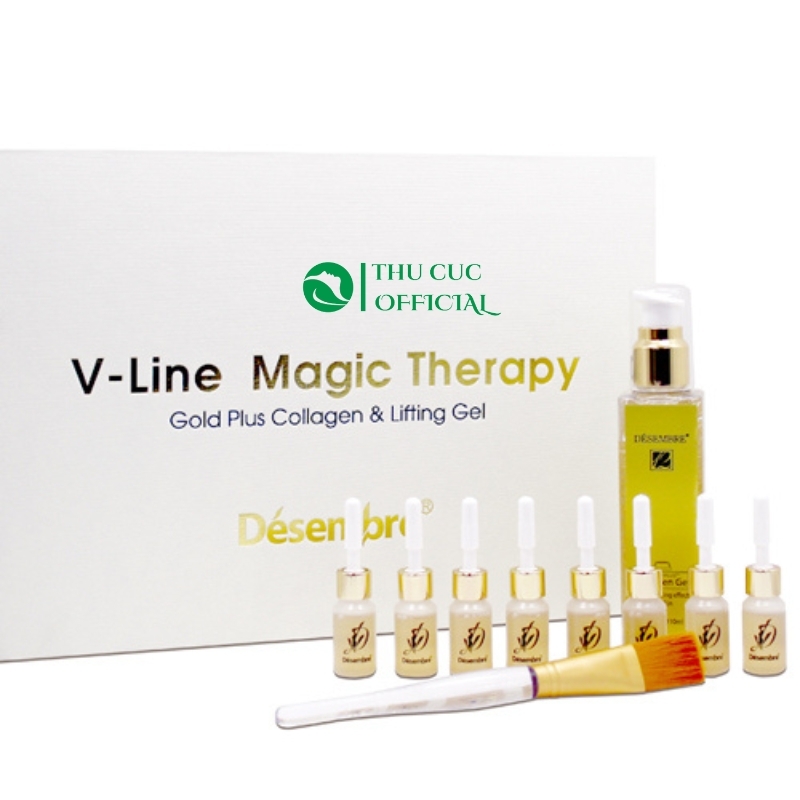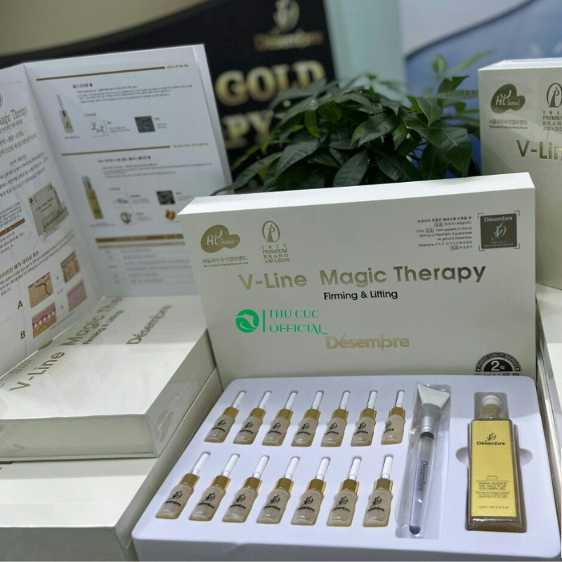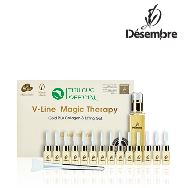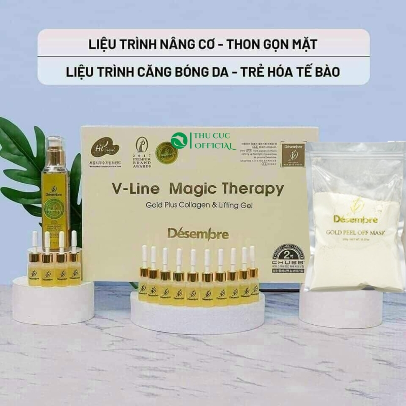 Bộ trị liệu Desembre V-Line Magic Therapy là dòng sản phẩm trị liệu ứng dụng công nghệ thon gọn mặt từ vàng 24K và Collagen thuỷ phân dựa trên cơ chế đưa các sợi chỉ vào sâu trong da. Nó giúp giải cơ và tái cấu trúc hệ da, mang đến hiệu quả thon gọn V-Line, nâng cơ, xóa nhăn và trẻ hóa làn da.