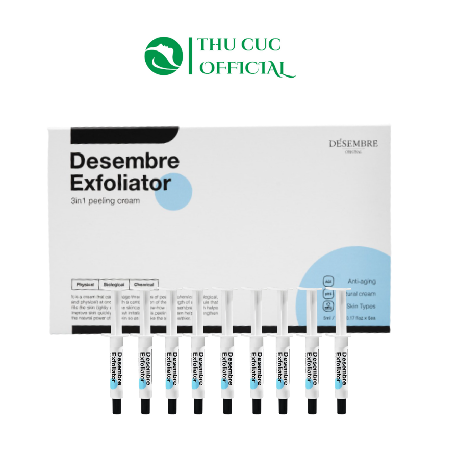 Desembre Exfoliator 3in1 Peeling Cream là sự kết hợp Peel hóa học 15% AHA + 0,4% BHA và Peel vi kim tảo biển sinh học đẩy mạnh khả năng tái tạo của da trong 72 giờ.