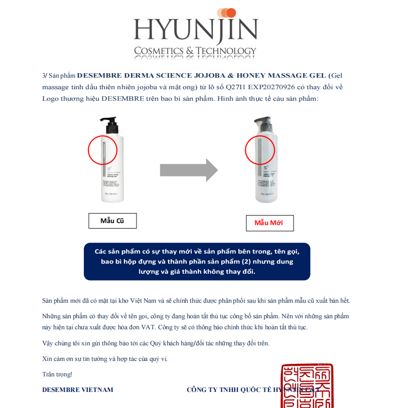 Quý khách quan tâm và muốn đặt mua Gel massage Desembre Jojoba & Honey Massage Gel 250g, liên hệ ngay 0982723468 với Mỹ Phẩm Thu Cúc để được tư vấn chi tiết. Chúng tôi cam kết hàng chuẩn chính hãng với mức giá ưu đãi nhất cho quý khách.