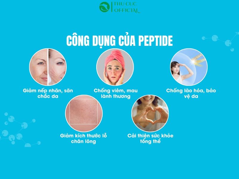 Chữa lành và phục hồi vết thương: Peptide cũng đóng vai trò trong việc chữa lành da. Chúng giúp phục hồi mô bị tổn thương và thúc đẩy sự phát triển của các tế bào da mới, giúp chúng có hiệu quả trong việc điều trị sẹo, mụn trứng cá và các tình trạng da khác.