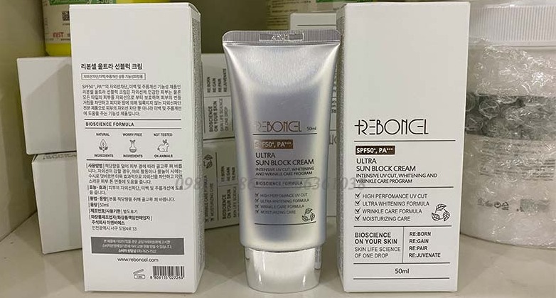 Kem chống nắng Reborncell ULTRA SUN BLOCK CREAM là mỹ phẩm ngành Spa chức năng có tác dụng 3 trong 1 chông tia tử ngoại UV (SPF50/PA++), làm trắng da và cải thiện nếp nhăn.