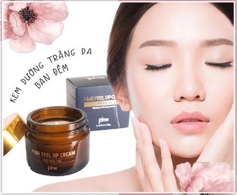 - Kem đêm Pime Feel Up giúp phái nữ ngăn ngừa thâm nám, tái tạo từ lớp biểu bì giúp kéo dài thanh xuân, giảm dần vết nhăn, cải thiện tông da trắng hồng, mềm mại