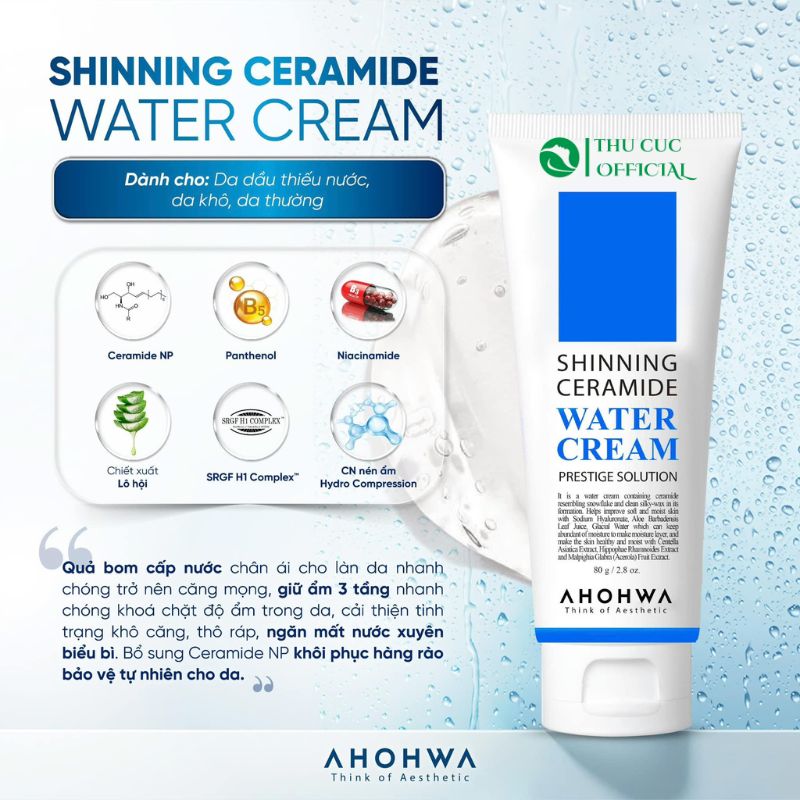 Chị em đặt mua Kem dưỡng ẩm Ahohwa Shinning Ceramide Water Cream 80g/ 200g, liên hệ ngay Hotline: 0982723468 để được hỗ trợ tốt nhất. Mỹ Phẩm Thu Cúc đang có rất nhiều mã giảm giá, chị em mua hàng đừng quên lưu và áp dụng ngay để có giá tốt.