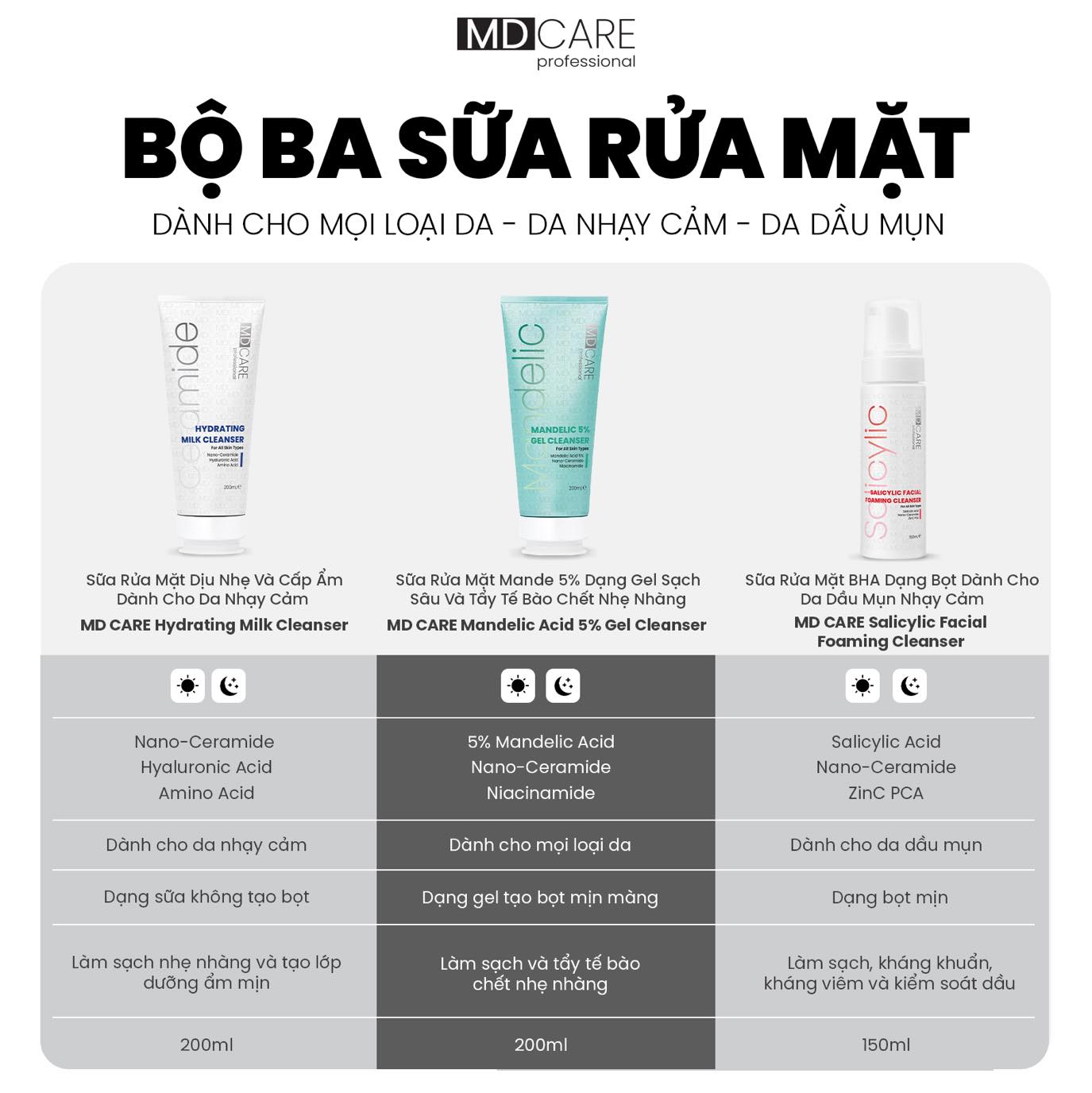 Với nền tảng khoa học rõ ràng, công thức chuẩn y khoa và hệ sản phẩm đa dạng cho cả da mặt lẫn cơ thể, MD CARE là lựa chọn phù hợp cho những ai đang tìm kiếm dược mỹ phẩm chuyên sâu dành cho làn da Việt, an toàn và hiệu quả bền vững.