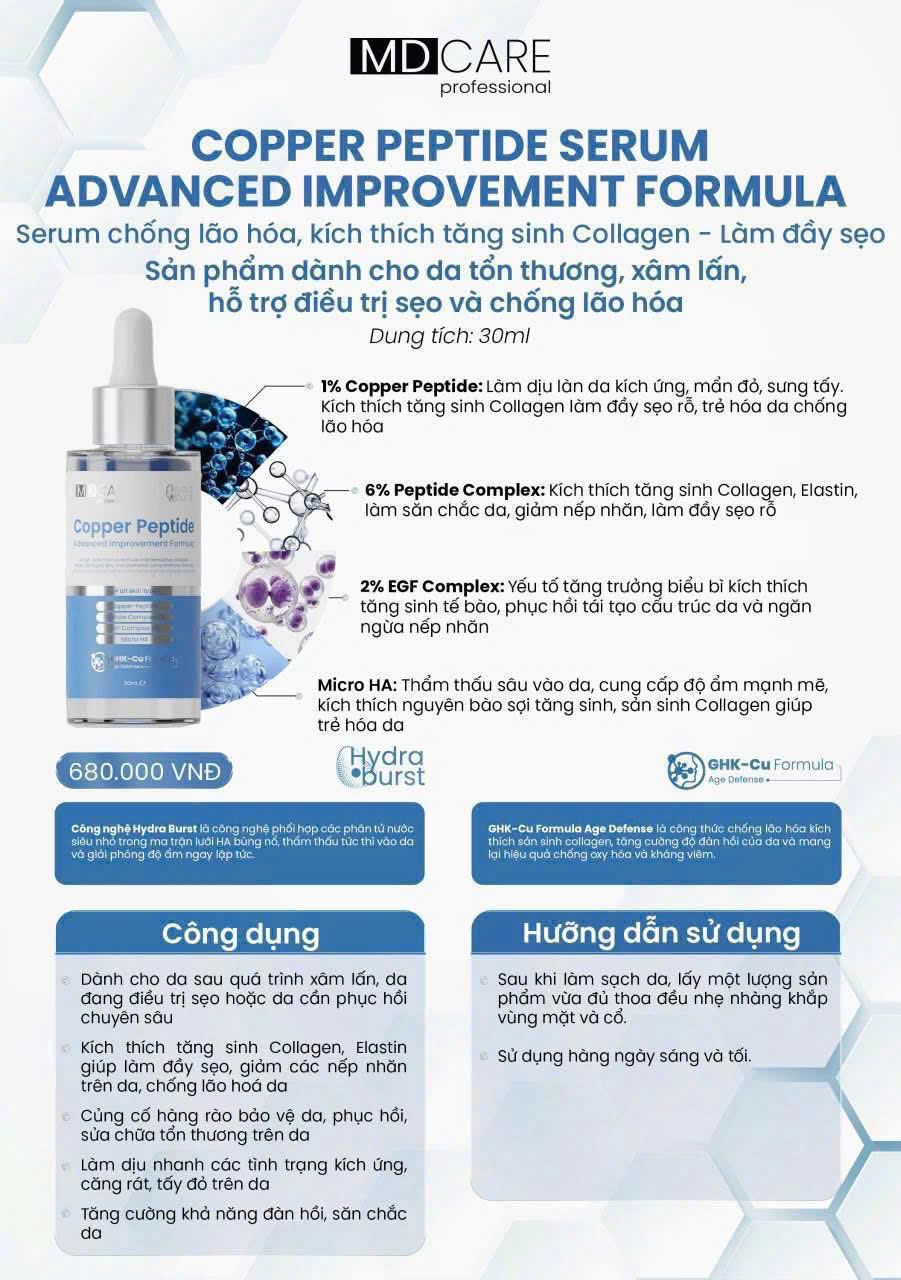 Copper Peptide Serum – hỗ trợ tái tạo collagen, phục hồi sau xâm lấn