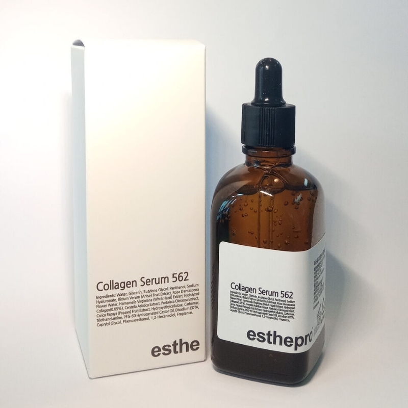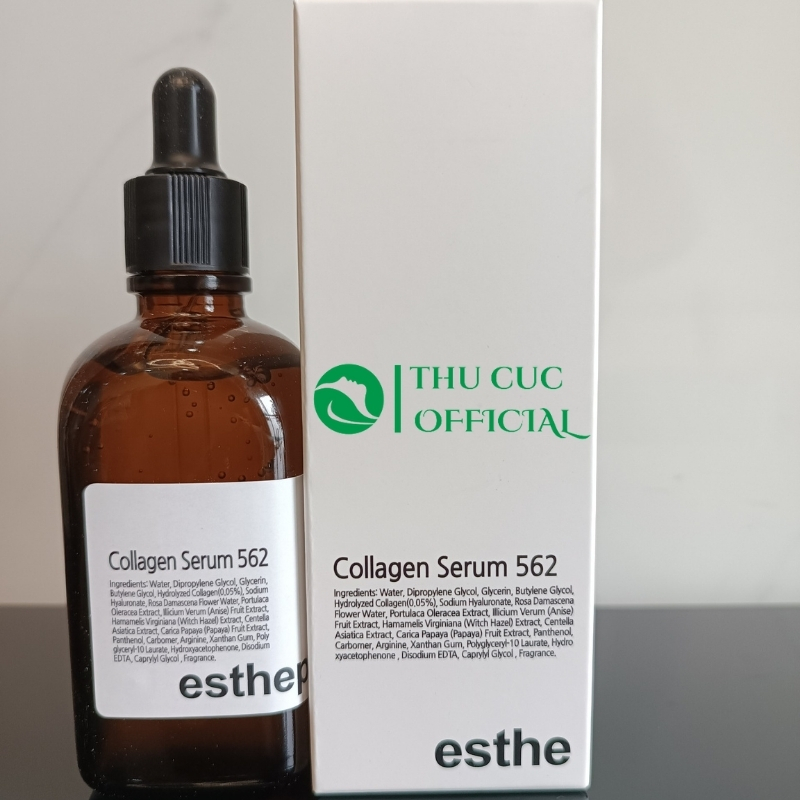 Serum Esthemax Collagen 562 có chứa: Water, Dipropylene Glycol, Glycerin, Butylene Glycol, Hydrolyzed Collagen (0.05%), Sodium Hyaluronate, Rosa Damascena Flower Water, Portulaca Oleracea Extract, Illicium Verum (Anise) Fruit Extract, Hamamelis Virginiana (Witch Hazel) Extract, Centella Asiatica Extract, Carica Papaya (Papaya) Fruit Extract, Panthenol, Carbomer, Arginine, Xanthan Gum, Poly glyceryl-10 Laurate, Hydroxyacetophenone, Disodium EDTA, Caprylyl Glycol, Fragrance,... Trong đó: