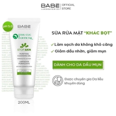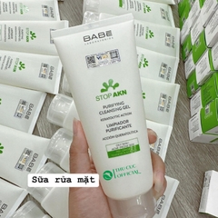 Sữa rửa mặt Babe Stop AKN Purifying Cleansing gel ít tạo bọt thích hợp cho da dầu mụn , da nhạy cảm, da mỏng yếu đang bị tổn thương . Sản phẩm mang đến khả năng làm sạch sâu nhanh chóng làm thông thoáng lỗ chân lông , giảm tổn thương do viêm và ngăn ngừa hình thành mụn trứng cá.