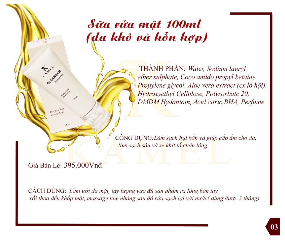 Các chủ spa chuyên nghiệp có nhu cầu đặt Sữa rửa mặt cho da hỗn hợp, da khô Kamel hãy liên hệ với chúng tôi để được tư vấn tốt nhất
