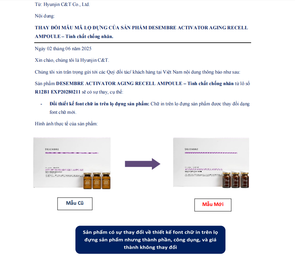 Desembre chính thức thay mẫu tế bào gốc trẻ hóa A+ mẫu mới 2022