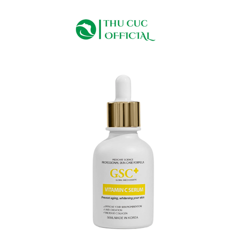 Tinh chất Serum Viatmin C GSC+ dưỡng trắng da với chiết xuất từ các thành phần tự nhiên, an toàn, hiệu quả. Sản phẩm chính hãng Hàn Quốc được nhập khẩu bởi công ty Vinako và phân phối bởi mỹ phẩm Thu Cúc.